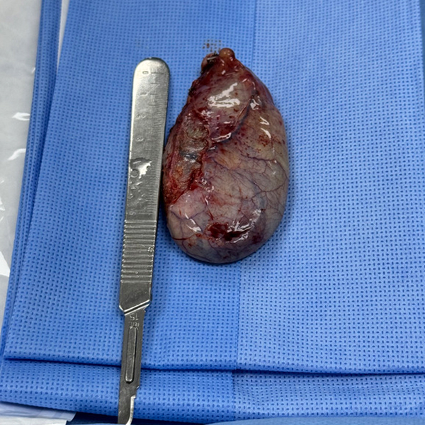 La vesícula biliar se extirpa y se retira del cuerpo.